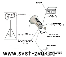 Рупорный громкоговоритель (мегафон) с ручным микрофоном.