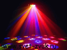 Световой, дискотечный эффект гобофловера с 3-х гранной призмой из дихроичных светофильтров,вокруг которой расположены зеркала, обеспечивающие проецирование эффекта почти на 180 градусов, 16 гобо, 20 разноцветных лучей, звуковая анимация. Эффекты: мультигобо с вращением в разные стороны под музыку, сканированием в одной плоскости, смешиванием и наложением цветов. Яркие,насыщенные цвета.